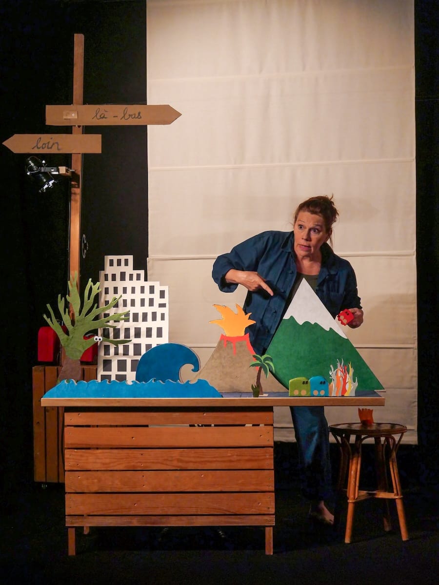 Le Groupe Maritime de Théâtre a bâti ce spectacle sur l’adaptation de l’album jeunesse Comme tout le monde de Charlotte Erlih et Marjolaine Leray (éditions Talents Hauts). Une histoire de voyage, celui d’une petite roulotte rouge rejetée par un village très gris qui aborde les questions de la tolérance, de la différence, de la migration ou encore de l’acceptation, dans un récit qui reste jubilatoire. Doit-on renoncer, tenter l’intégration ou repartir en ayant retrouvé ses couleurs ? Cette fable (en est-elle vraiment une ?) a trouvé un écho dans l’univers esthétique du Groupe Maritime de Théâtre : papier, objets, manipulations à vue, poésie et astuces, le tout baigné dans un univers sonore subtil, illustrent un propos qui laisse une liberté de lecture au spectateur. En ces temps tourmentés, les gens font des voyages, libres ou contraints, et parfois ils aimeraient bien se poser… Pour Josette Langlois tout commence avec des cartons d’emballage. « Je jette, je recommence, je fabrique des prototypes.