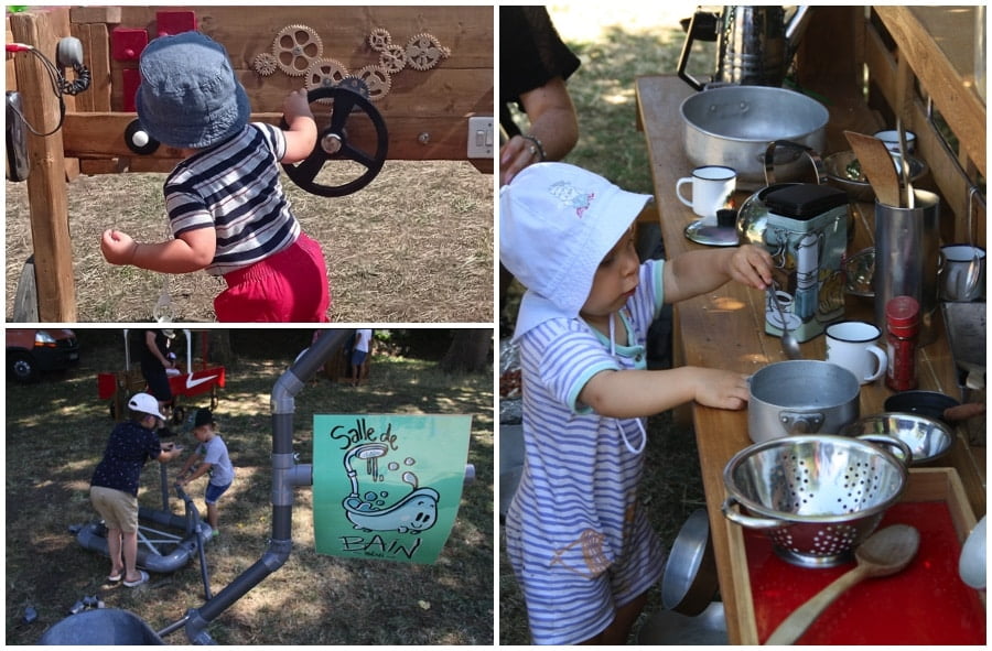 La salle de bain : jeux d’assemblage avec tous les tuyaux en PVC ! Plébiscité par les enfants, cet espace de construction perpétuelle est le théâtre de combinaisons improbables.