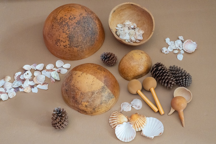 Retrouver cette symbiose avec le vivant, dit également Alain Paulo : « On fait partie intégrante de la nature et la beauté du son participe de la découverte esthétique : le chant des oiseaux, le souffle du vent, ses variations. La nature nous offre une partition musicale. » Elle est déjà pour lui un modèle sonore « qui nous offre cette variété de champ acoustique, de productions sonores en lien avec les actions qui les déclenchent. Mes ateliers et mes sessions de formation s’inspirent d’expériences simples : feuilles mortes, ruisseau qui coule… Je pars de cet imaginaire sonore pour construire de petites séquences, insuffler une histoire à partir du vent que l’on produit avec sa bouche, de coquillages que l’on frotte les uns avec les autres, du riz qui ruisselle dans mon tambour, afin de recréer un contexte naturel.