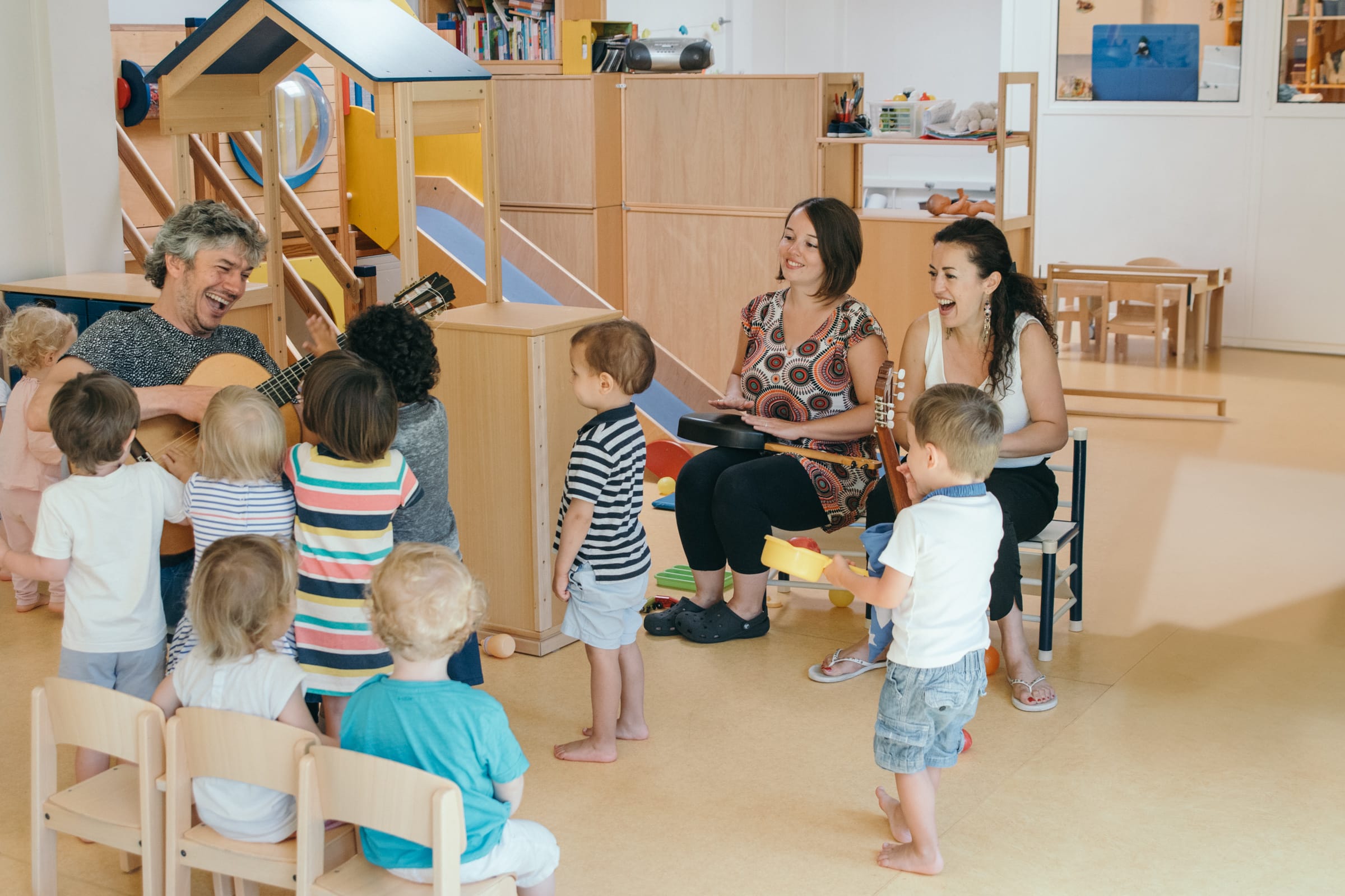 Élaborés à la demande, les temps de formation in situ proposés par Enfance et Musique se glissent dans la vie du lieu. Ils alternent des temps de partage entre adultes…