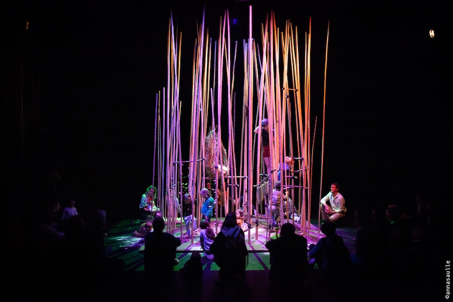 Des architectes de la découverte invitent, en exploration libre, le tout-petit à pénétrer dans une forêt de bambous. La compagnie MOSO accompagne cette expérience spatiale et temporelle. Anatole Zembok…
